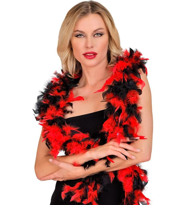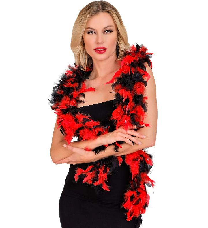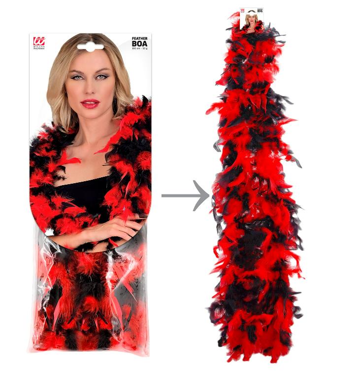 Crno-crveno perje/boa dužine 180cm, pogodna dekoracija i aksesoar za disko ili čarlston tematske žurke.